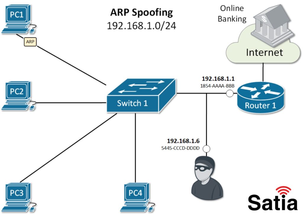 - ARP Spoofing: